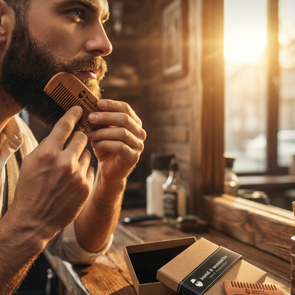 • Brada in muce so modne in seksi, vendar le, če so dobro negovane, mehke in sijoče. Če želite ohraniti brado ali muce v dobrem stanju, uporabite naš odličen in priročen lesen glavnik in glavnik za oblikovanje. Z dobro negovano brado boste videti in se počutiti najbolje.