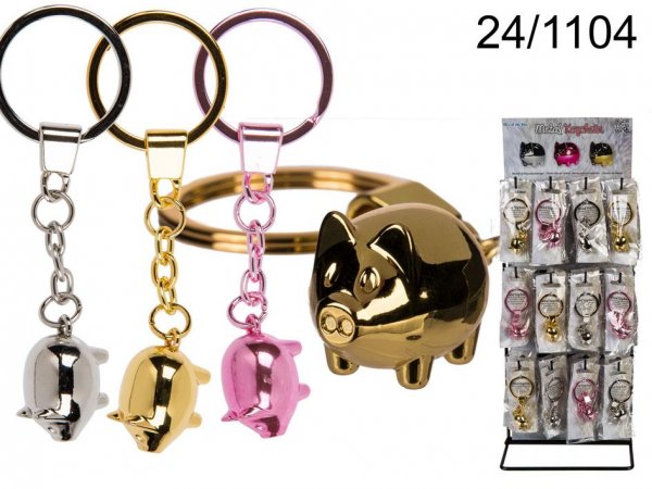 Kovinski obesek za ključe z majhnim prašičkom na verigi, ki osebi, ki ga nosi, prinaša srečo. Na voljo je več barv.