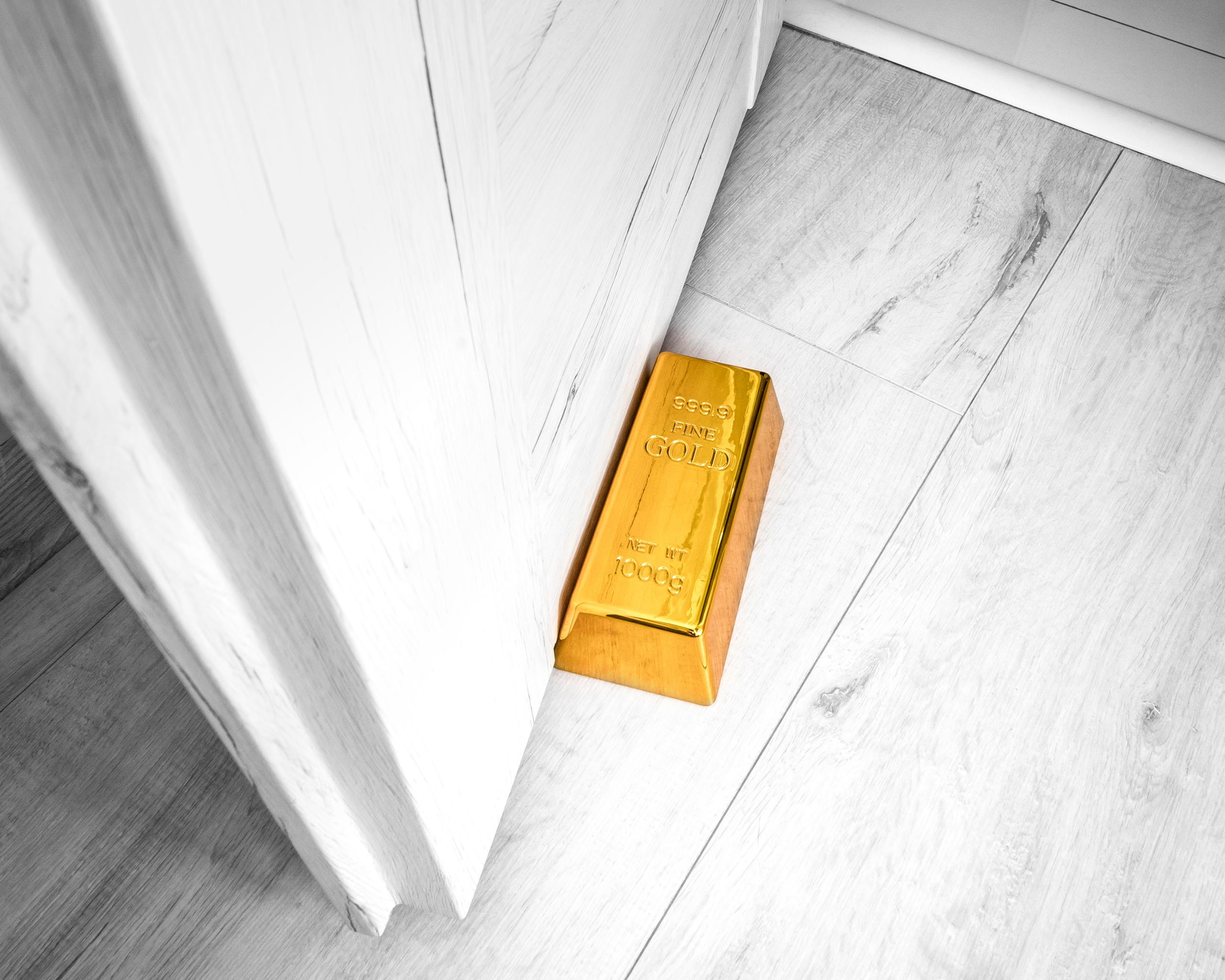 Originalna in razkošna zlata palica kot zamašek ali utež za papir.